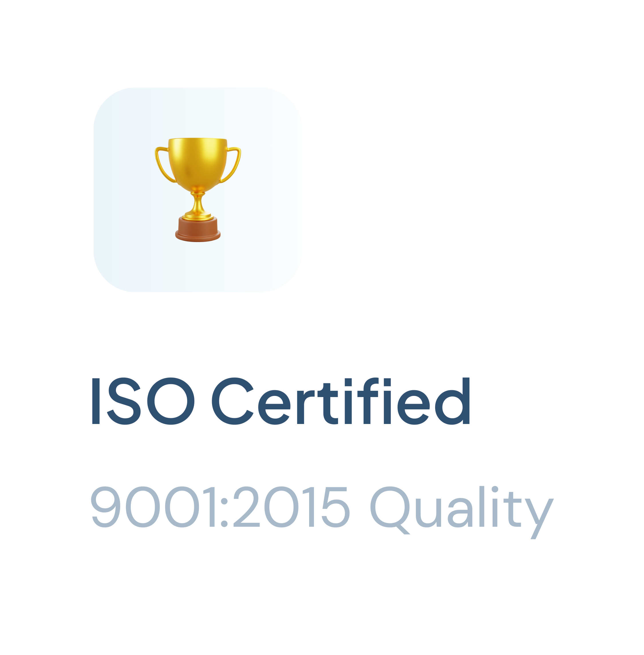 ISO 9001:2015 compliant operations ensuring the highest quality standards in every project we deliver.